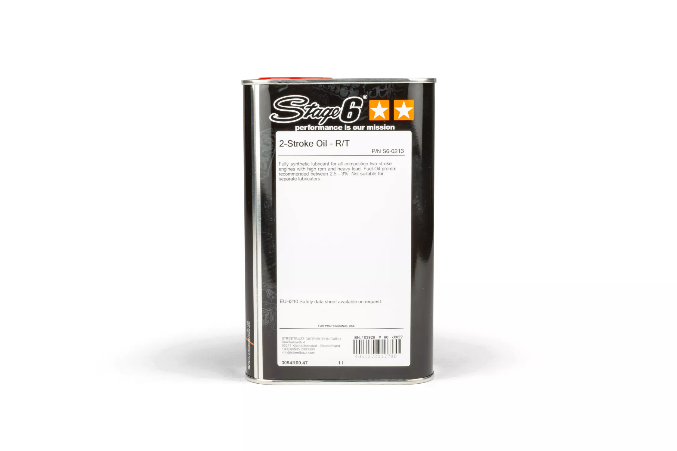 L’olio per motori a 2 tempi Stage6 R/T Racing MK3 è il nostro olio per motori a 2 tempi completamente sintetico ad alte prestazioni per motori da competizione con regimi molto elevati, alte temperature di esercizio e fortemente sollecitati nell’uso gravoso in pista.